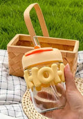 - Product Name - Glass Tumbler Mug with Lid & Silicon Sleeve/Hot and Cold Beverages/Travel Bottle Smoothies Fruit Juice Jar/Sipper Bottle with Straw/Tea Milk Mug for Women Teen Girls