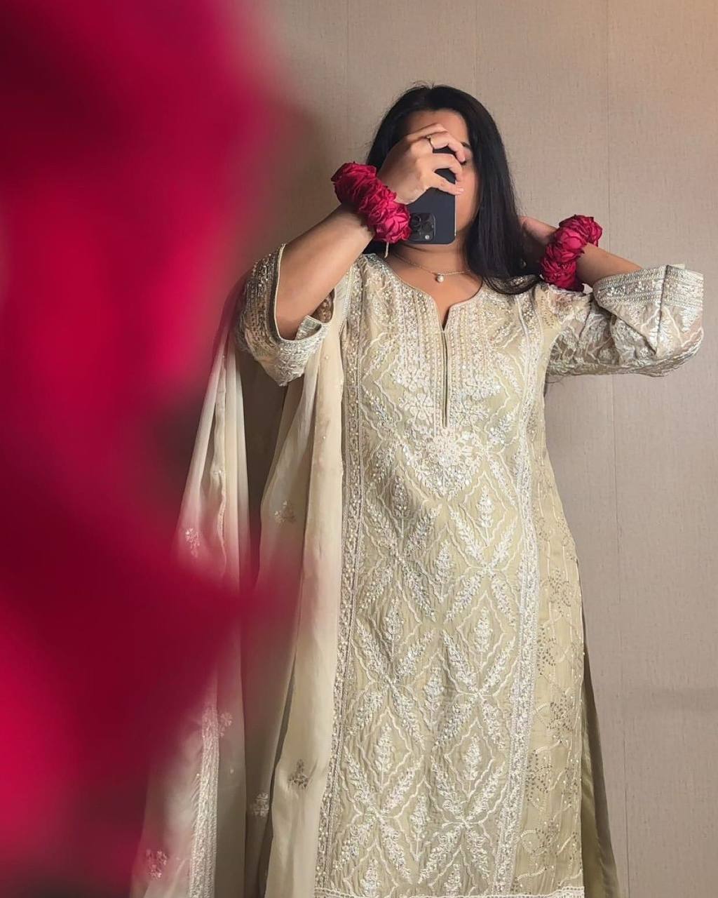 Heavy Faux Georgette Top Plazzo & Dupatta Set