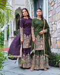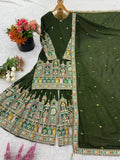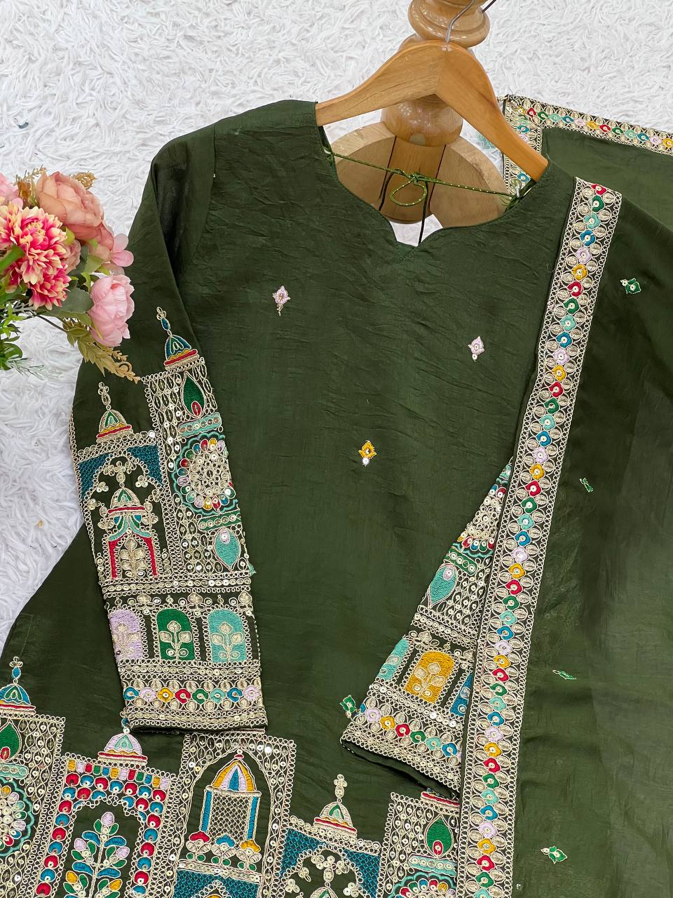 Pure Chinnon With Heavy Embroidery Coding Dori-Sequence Work Top-Bottom And Dupatta Set Fully Stitched Ready To Wear